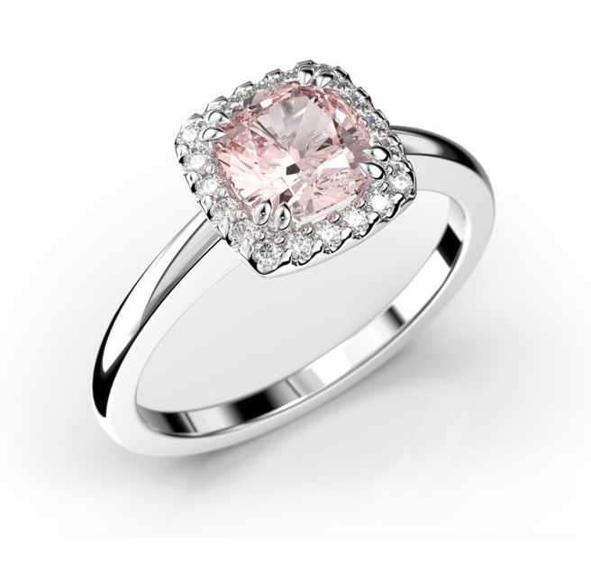 Festive Elsa 587-090M-VK med en 1,00 ct cushionslipad morganit och 20 0,005 ct stenar runtom sig.