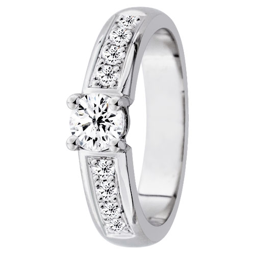 Festive Eva 510-056-vk är en vacker diamantring av vitguld med sidostenar. Största delen av ringstorleken tillverkas på beställning, och då är leveranstiden 10-20 arbetsdagar. Diamantringar som beställs från fabriken har endast bytesrätt. Graverade diamantringar har ingen retur- eller bytesrätt. Mer information om ringen hittar ni nedan på Mer information -fältet.