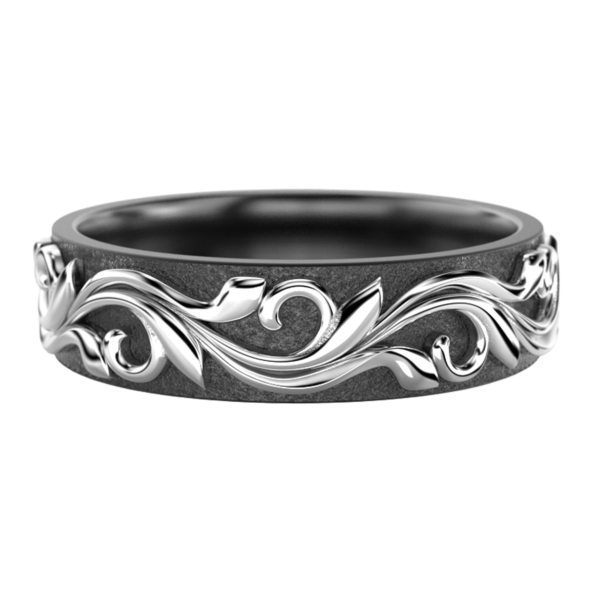 Festive Feeniks Nox 14-FM60-VM-ringen, som namnet antyder, hämtar sin inspiration från naturen och förnyelse. Det 6 mm breda ringmönstret symboliserar kontinuitet, livets cykel och hållbar tillväxt. Den detaljerade designen ger ringen organisk styrka, och den djupa, mörka tonen av zirkonium och glöden av vitt guld betonar den starka föreningen av de två materialen. Den tankeväckande och meningsfulla Feeniks Nox unisex-ringen är designad för att hålla över tid och användning.