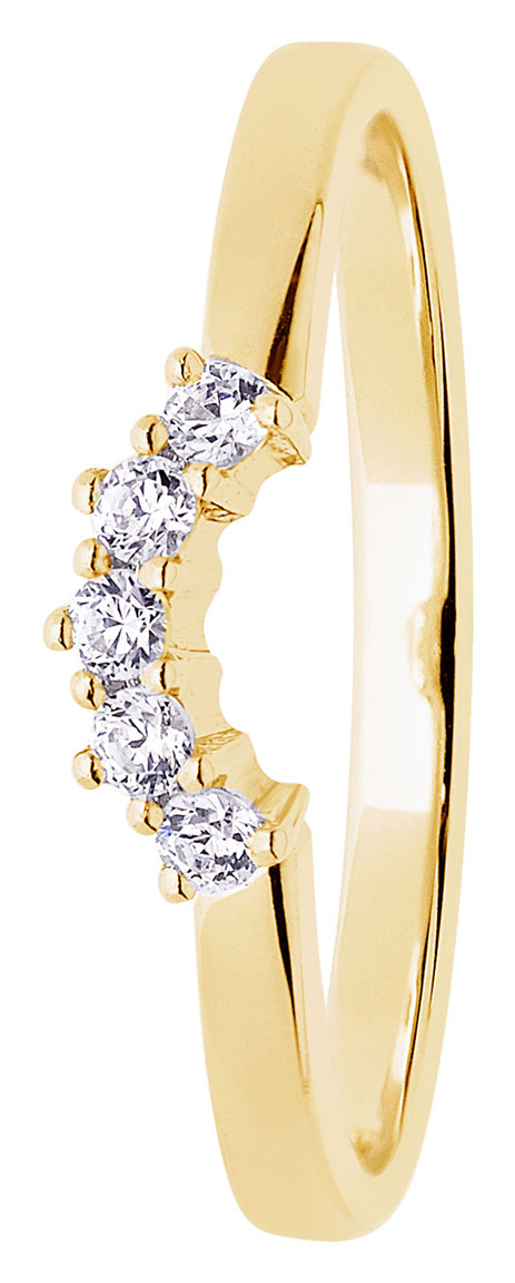 Festive Fiona 552-010-kk är en vacker diamantring av gulguld med stenar på rad. Fiona kan också placeras vid en annan ring som en ”ring enhancer” ringförstärkare. Fiona är format som en liten båge för att accentuera vigselringens diamant. Största delen av ringstorleken tillverkas på beställning, och då är leveranstiden 10-20 arbetsdagar. Diamantringar som beställs från fabriken har endast bytesrätt. Graverade diamantringar har ingen retur- eller bytesrätt. Mer information om ringen hittar ni nedan på Mer information -fältet.