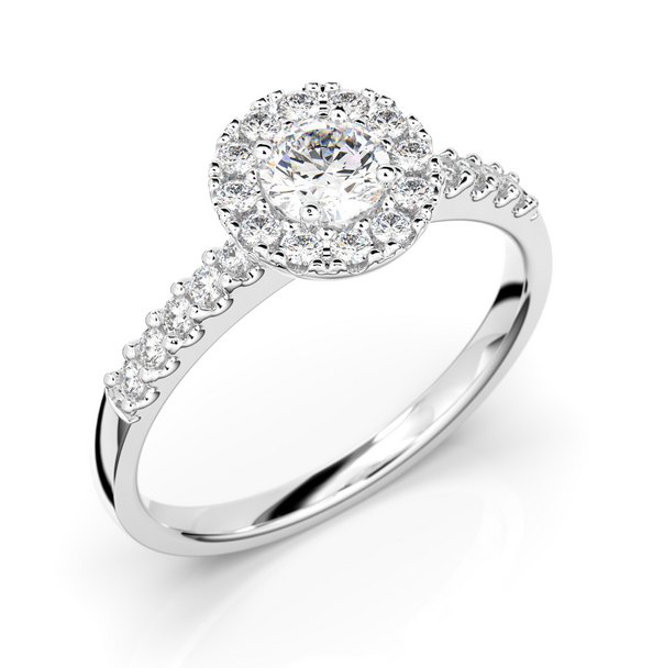 Festive Isabella 595-052-VK haloring med en 0,30 ct diamant och 22 0,01 ct stenar runtom sig. Tjocklek 1,9 mm.