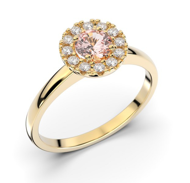 Festive Isabella 594-042M-KK carmosèring med en 0,30 ct morganit och 12 0,01 ct stenar runtom sig. Tjocklek 1,9 mm.