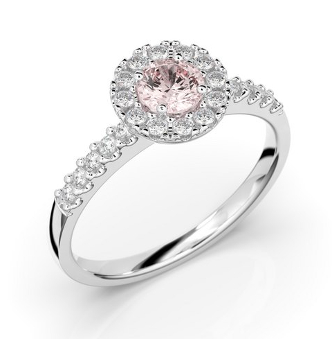 Festive Isabella 595M-052-VK haloring med en 0,30 ct morganit och 22 0,01 ct stenar runtom sig. Tjocklek 1,9 mm.