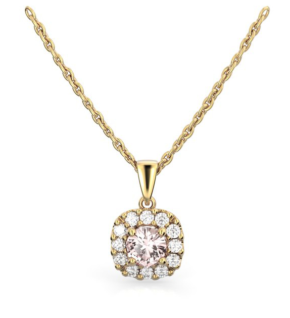 Festive Janette morganit diamant hängsmycke 567-030MR-KK med halofattning, och en 0,20 ct morganit och 12 wesselton diamanter. Kedjor säljes separat. Festive smycken tillverkas på beställning, och då är leveranstiden 10-20 arbetsdagar. Mer information om smycken hittar ni på Mer information -fältet.