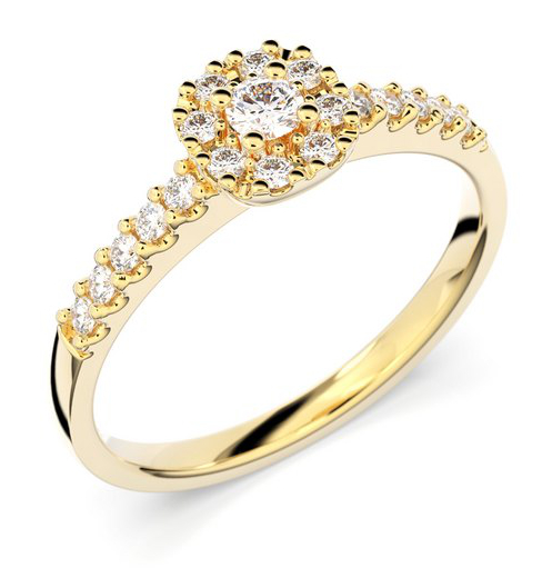 Festive Jasmin halo-diamantring 561-025-KK är en klassisk haloring med 19 briljantslipade wesselton diamanter. Anpassad för att ligga perfekt bredvid en alliansring. Största delen av ringstorleken tillverkas mot order, och då är leveranstiden 10-20 arbetsdagar. Diamantringar som beställs från fabriken har endast bytesrätt. Graverade diamantringar har ingen retur- eller bytesrätt. Mer information om ringen hittar ni på Mer information -fältet.