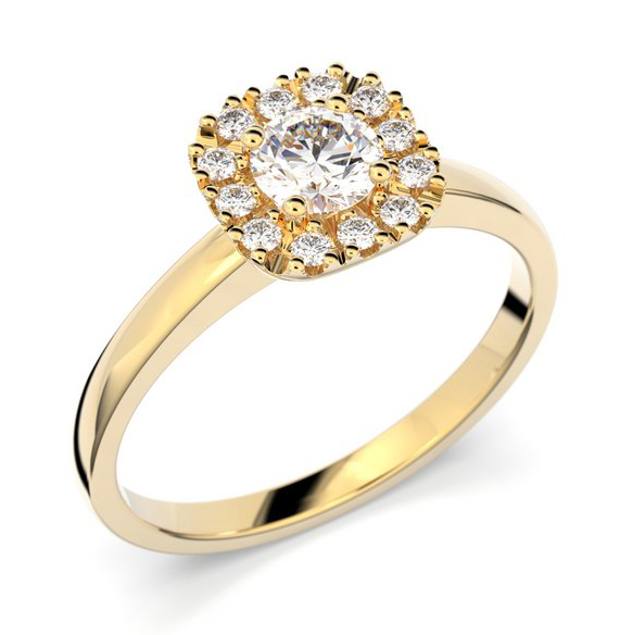 Festive Josefiina 596-042-KK är en fyrkantig haloring med en 0,30 ct diamant och 12 0,01 ct stenar runtom sig. Tjocklek 1,9 mm.