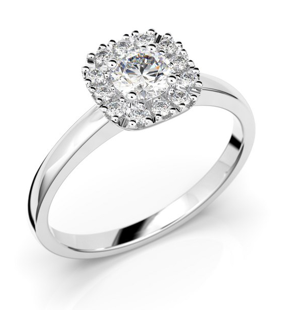 Festive Josefiina 596-042-VK är en fyrkantig haloring med en 0,30 ct diamant och 12 0,01 ct stenar runtom sig. Tjocklek 1,9 mm.