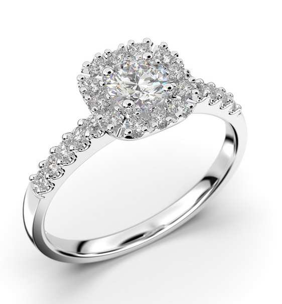 Festive Josefiina 597-052-PK haloring är en fyrkantig diamantring med en 0,30 ct diamant och 23 0,01 ct stenar runtom sig. Tjocklek 1,9 mm.