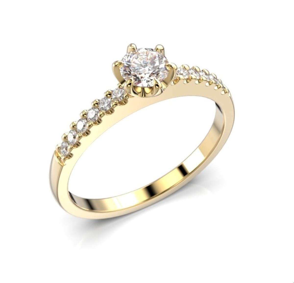 Festive Julianna krona 0,42 ct sidostensring med diamanter gult guld 669-105P-KK består av cirka 12 stycken diamanter om 0.010 carat, samt 1 diamant om 0.30 carat. Total caratvikt cirka 0.42 ct.