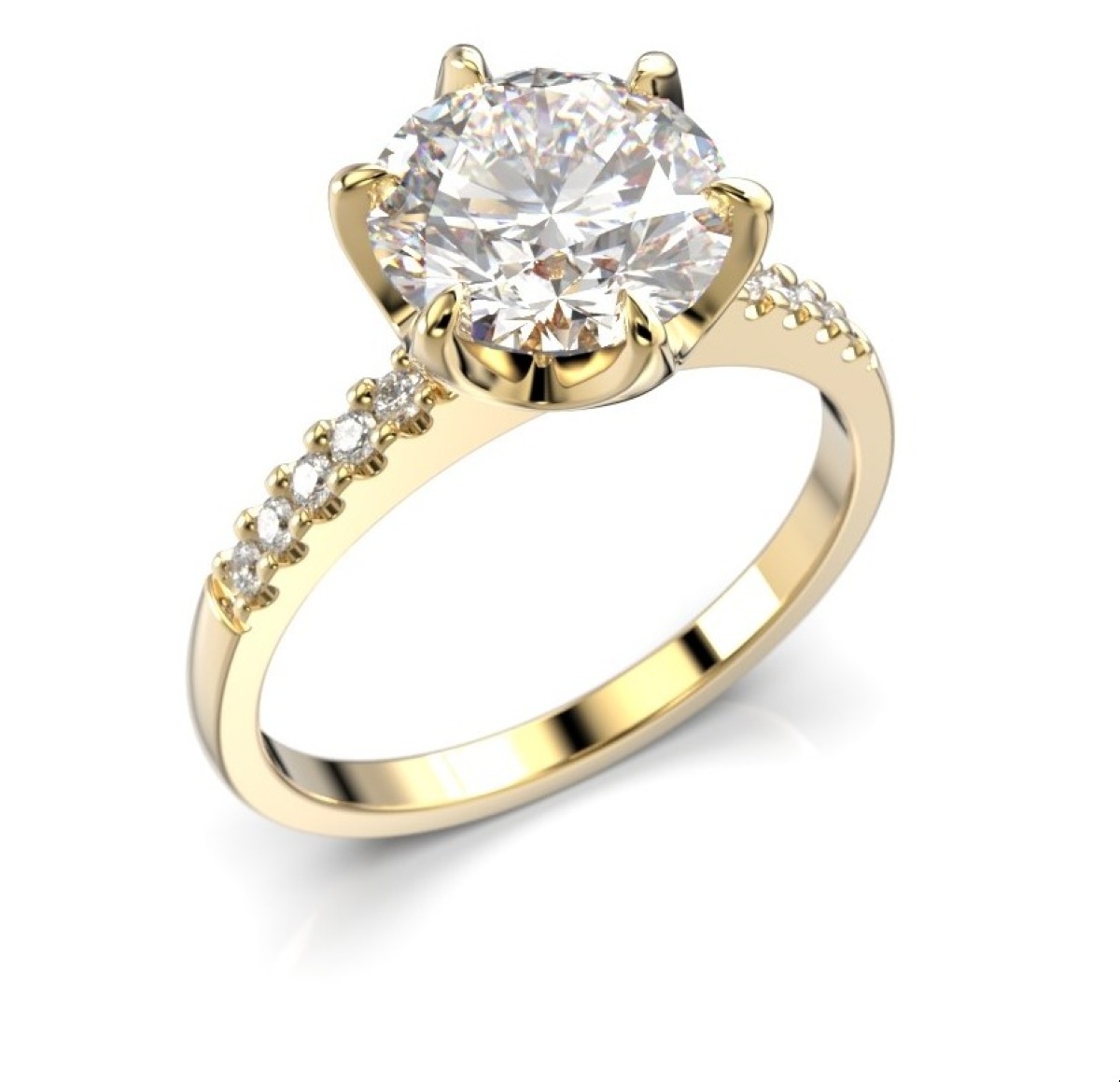 Festive Julianna krona diamantring 2,10 ct gult guld 682-210-KK består av cirka 10 stycken diamanter om 0.010 carat, samt 1 diamant om 2,00 carat. Total caratvikt cirka 2,10 ct.
