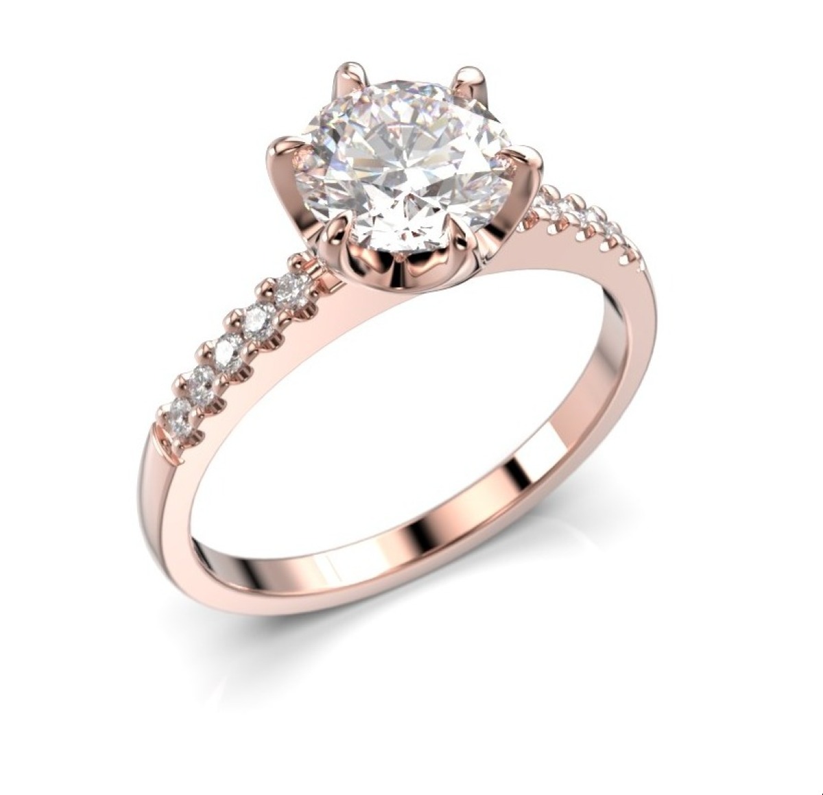 Festive Julianna sidostens diamantring 1,10 ct krona roseguld 682-110-PK består av cirka 10 stycken diamanter om 0.010 carat, samt 1 diamant om 1,00 carat. Total caratvikt cirka 1,10 ct.