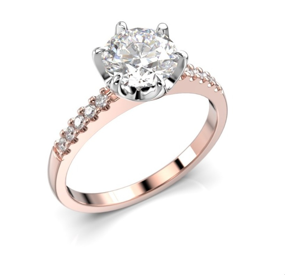 Festive Julianna sidostens diamantring 1,10 ct krona rosevitguld 682-110-PV består av cirka 10 stycken diamanter om 0.010 carat, samt 1 diamant om 1,00 carat. Total caratvikt cirka 1,10 ct. Klo på denna sidostensring är i vittguld för modern touch.