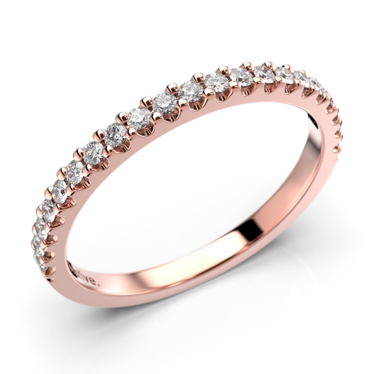 Festive Juliette 523-021-pk är en vacker diamantring av rödguld med stenar på rad. Största delen av ringstorleken tillverkas på beställning, och då är leveranstiden 10-20 arbetsdagar. Diamantringar som beställs från fabriken har endast bytesrätt. Graverade diamantringar har ingen retur- eller bytesrätt. Mer information om ringen hittar ni nedan på Mer information -fältet.
