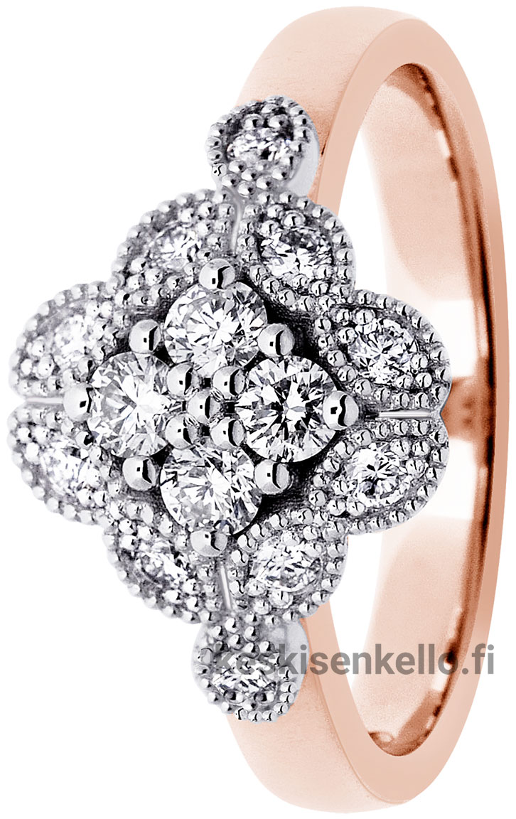 Festive Lotus 524-045-pk är en vacker diamantring av rödguld med flera stenar. Största delen av ringstorleken tillverkas på beställning, och då är leveranstiden 10-20 arbetsdagar. Diamantringar som beställs från fabriken har endast bytesrätt. Graverade diamantringar har ingen retur- eller bytesrätt. Mer information om ringen hittar ni nedan på Mer information -fältet.