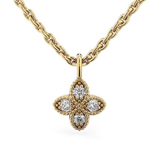 Festive Lotus diamant hängsmycke 591-006R-KK med 0,015ct wesselton diamanter och millgrain-dekoration. Storlek 10,8 x 7,5 mm, kedjan säljs separat. Festive smycken tillverkas på beställning, och då är leveranstiden 10-20 arbetsdagar.Mer information om smycken hittar ni på Mer information -fältet.