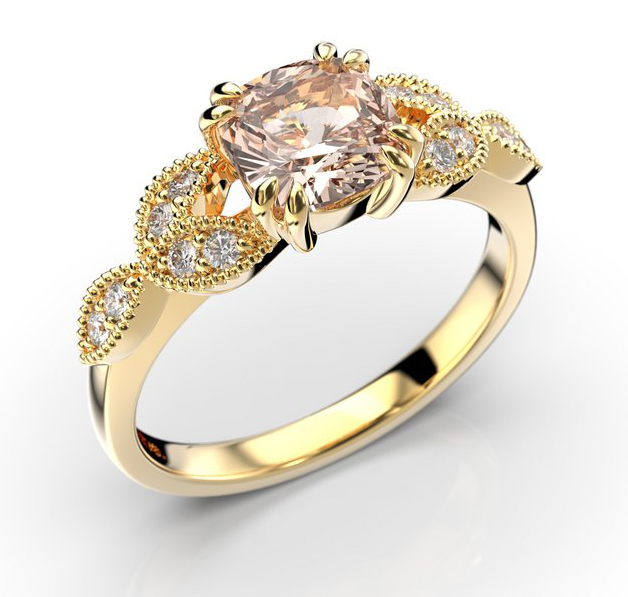 Festive Madison 586-092M-KK med en cushionslipad ljusrosa morganit och 12 0,01 briljantslipade diamanter.
