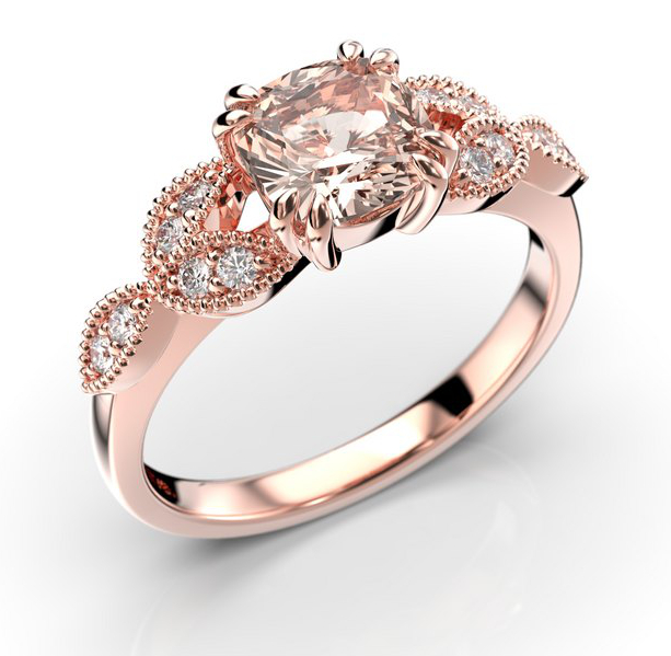 Festive Madison 586-092M-PK med en cushionslipad ljusrosa morganit och 12 0,01 briljantslipade diamanter.