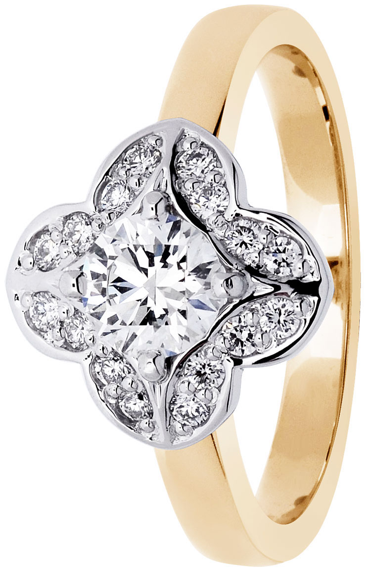 Festive Magnolia 527-061-kkvk är en vacker halo diamantring av gul- och vitguld. Största delen av ringstorleken tillverkas på beställning, och då är leveranstiden 10-20 arbetsdagar. Diamantringar som beställs från fabriken har endast bytesrätt. Graverade diamantringar har ingen retur- eller bytesrätt. Mer information om ringen hittar ni nedan på Mer information -fältet.