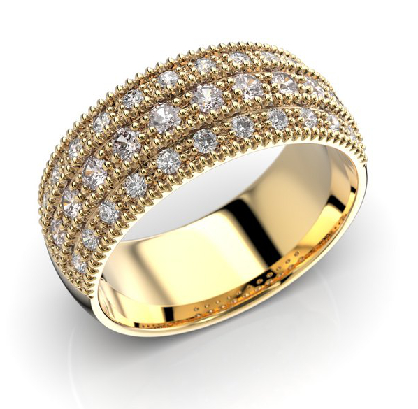 Festive Manuela 579-052M-KK trippel allians morganit-diamantring i gulguld med 10 0,03 ct morganiter och 22 0,01 ct diamanter. Bredd 7,7 mm. Största delen av ringstorleken tillverkas mot order, och då är leveranstiden 10-20 arbetsdagar. Diamantringar som beställs från fabriken har endast bytesrätt. Graverade diamantringar har ingen retur- eller bytesrätt. Mer information om ringen hittar ni på Mer information -fältet.