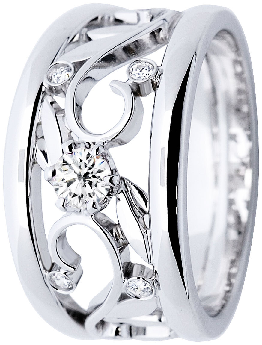 Festive Metsän aarre 538-029-vk är en vacker filigrain diamantring av vitguld med flera stenar. Största delen av ringstorleken tillverkas på beställning, och då är leveranstiden 10-20 arbetsdagar. Diamantringar som beställs från fabriken har endast bytesrätt. Graverade diamantringar har ingen retur- eller bytesrätt. Mer information om ringen hittar ni nedan på Mer information -fältet.