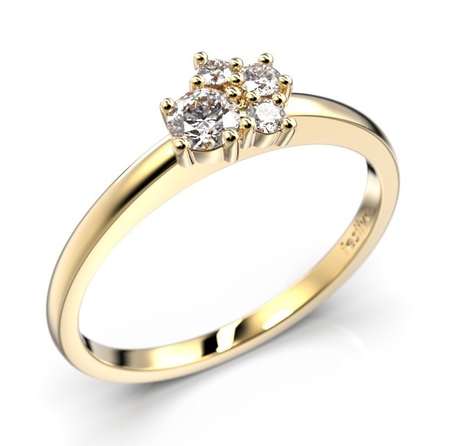 Festive Nadja Bloom flerstens guld diamantring 691-017-KK är en tidlös klassiker med 0,03 + 2 x 0,02 ct diamanter som formar en blominspirerad krans som fulländar den centrala 0,10 ct rundade diamanten. Bredden på ringens skena är 1,5 mm, och 5,6 mm vid infattningen. Ringen är i gulguld och ni kan välja om ni önskar ringen i 18 karat guld eller 14 karat.
