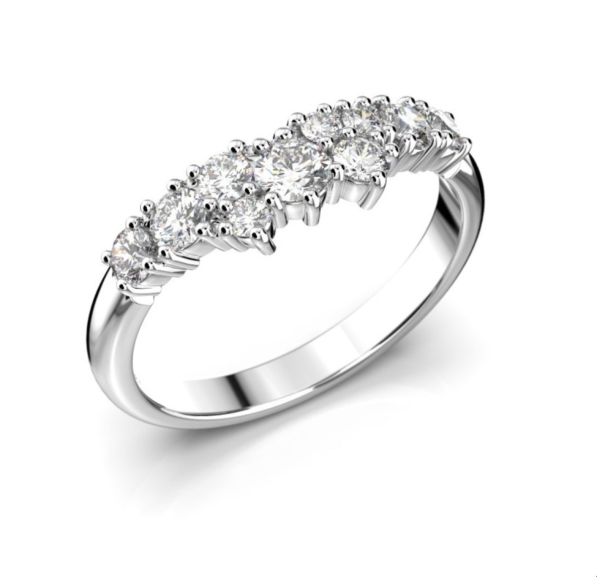 Festive Nadja Medium diamantring 668-050-VK är tillverkad i vitt guld och dekorerad med briljantslipade diamanter 0,10 + 2x0,07 + 4x0,05 + 3x0,02 (total. 0,50 ct). Söker ni en annan ring till Nadja rekommenderar vi halvalliansring Juliette.