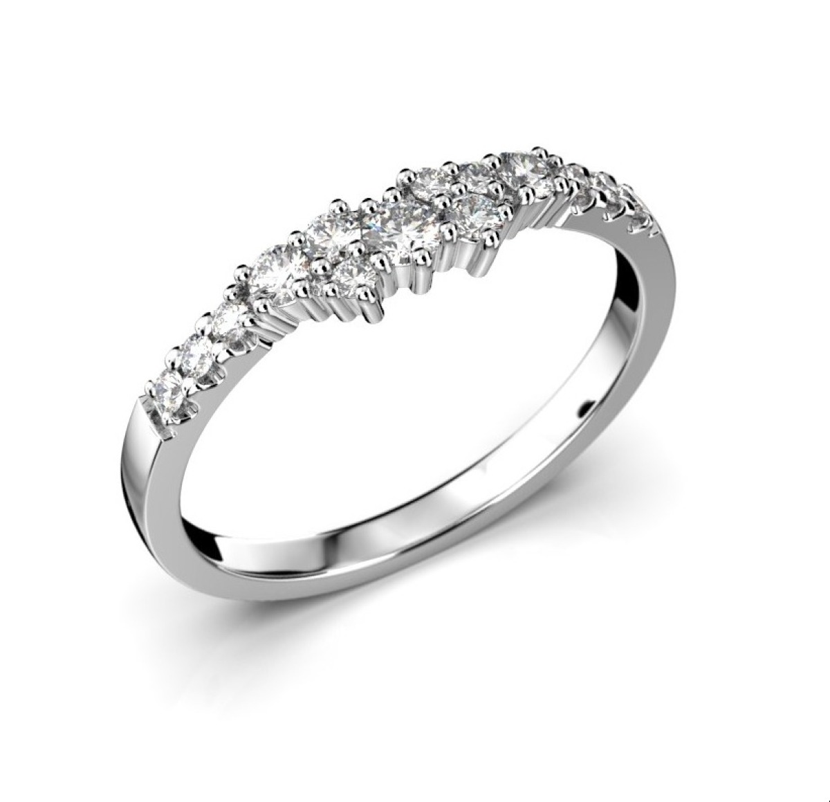 Festive Nadja Side diamantring vitguld 667-024-VK är tillverkad i vitt guld och dekorerad med briljantslipade diamanter 0,05 + 2x0,03 + 2x0,02 + 9x0,01 (total vikt. 0,24 ct). Söker ni en annan ring till Nadja rekommenderar vi halvalliansring Juliette.