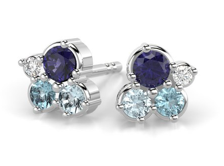 Ett par Festive Nelly Blue diamant carmose örhängen 629-024B-VK dekorerad med topaser (4 x 0,03 ct), blå safirer (2 x 0,05 ct) och diamanter (2 x 0,01 ct). Diameter 5,5 mm. Bär ensam eller kombinera med Nelly-halsband.