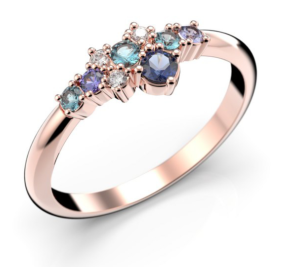Festive Nelly Blue 609-019B-PK är en fin blåfärgad ädelsten diamant Carmoséring dekorerad topaser (0,09ct), blå safirer (0,10 ct) och diamanter (0,03 ct). Tjocklek 2 mm.