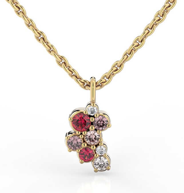 Festive Nelly Pink diamant carmose hängsmycke 630-022P-KK dekorerad med topaser (4 x 0,03 ct), tourmaliner (2 x 0,03 ct), ljusröda safirer (2 x 0,03 ct) och rubiner (0,05 + 0,03 ct). Mått: 5 x 13 mm. Bär ensam eller kombinera med Nelly-örhängen. Kedjan säljs separat. Mer information om smycken hittar ni på Mer information -fältet.