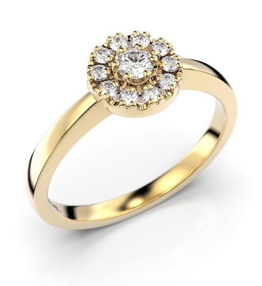 Festive Olivia halo-diamantring 563-017-KK är en klassisk haloring med 11 briljantslipade diamanter. Största delen av ringstorleken tillverkas mot order, och då är leveranstiden 10-20 arbetsdagar. Diamantringar som beställs från fabriken har endast bytesrätt. Graverade diamantringar har ingen retur- eller bytesrätt. Mer information om ringen hittar ni på Mer information -fältet.