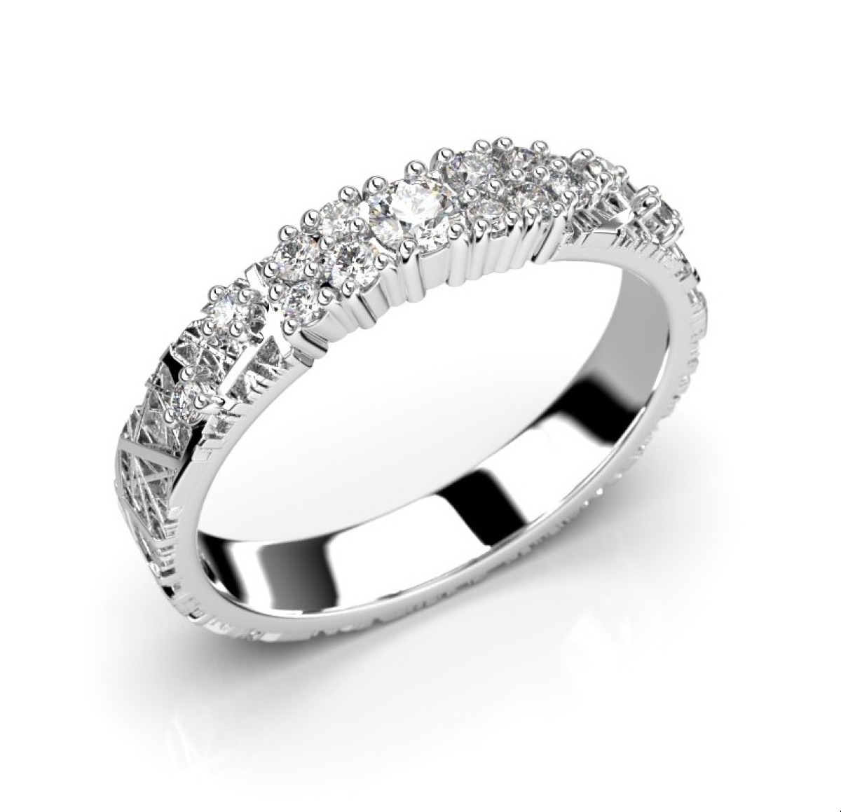 Festive Routa Tieva diamantring 665-023-VK är tillverkad i vitt guld och dekorerad med ett mönster inspirerat av granit och briljantslipade diamanter 0,07+2x0,02+2x0,015+9x0,01 (Total. 0,23 ct).