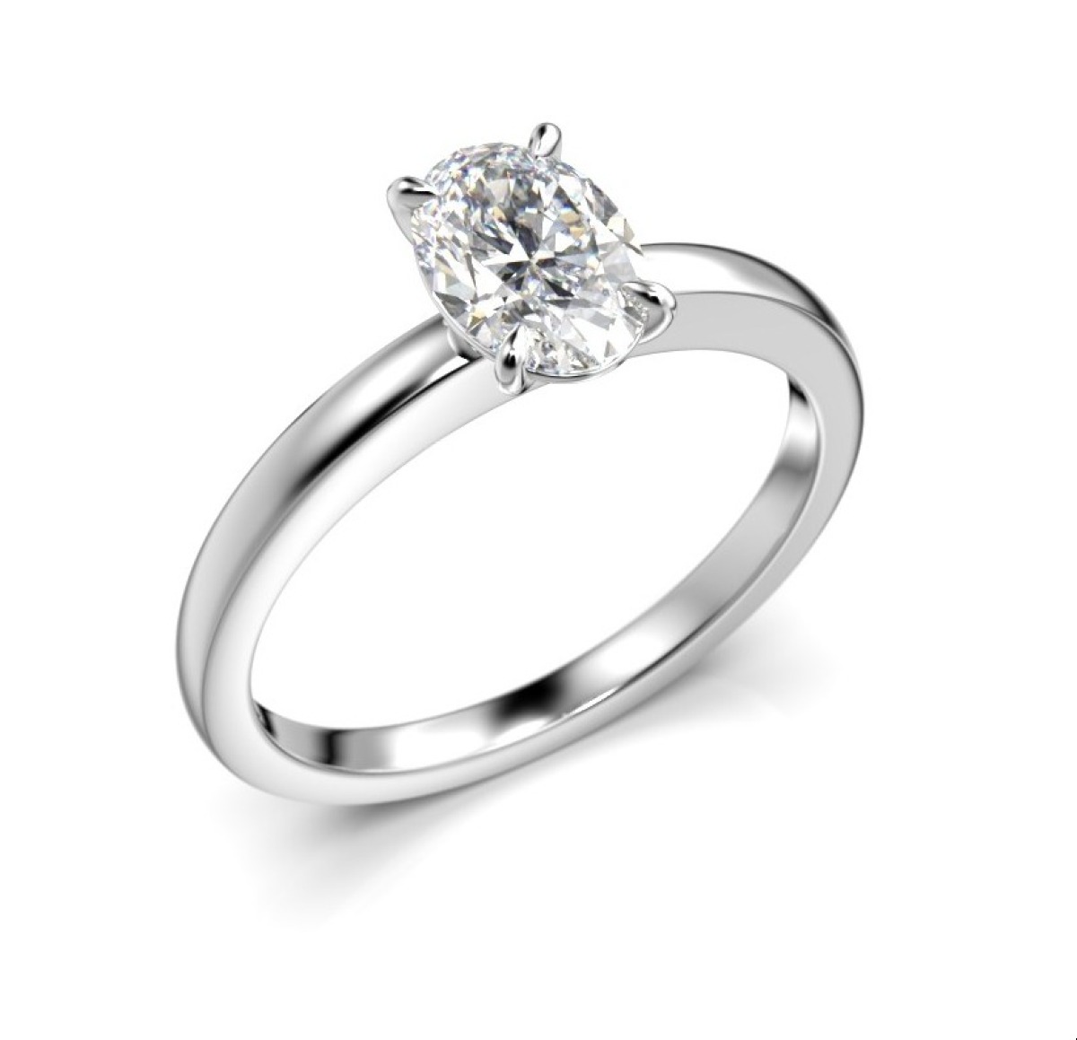 Festive Selena oval enstens diamantring vitguld 0,70 ct 683-070-VK med sin kloinfattning låter diamanten stå i centrum. Denna mycket diskreta ring är i vittguld. Ringens bredd vid infattning är 7 mm.