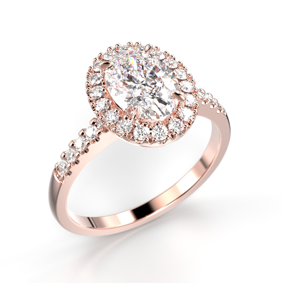 Selena Halo kombinerar en klassisk oval form med en modern halo-design för att skapa en balanserad helhet. Denna diamantring i roséguld är ett fantastiskt val för en förlovnings- eller vigselring eller en minnesvärd gåva.