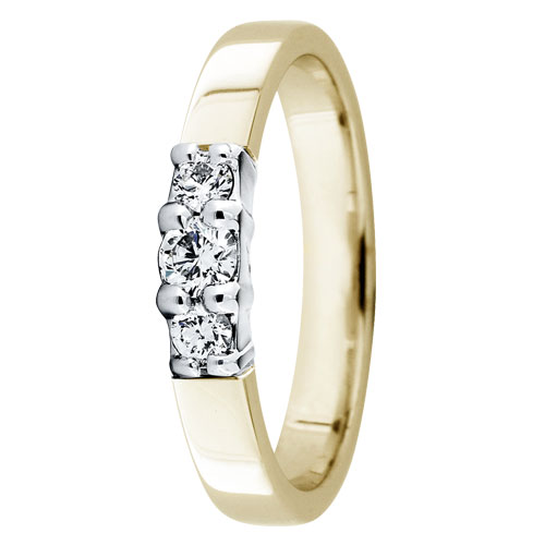 Festive Trilogy 345-030-kkvk är en vacker diamantring av gul- och vitguld med tre stenar. Största delen av ringstorleken tillverkas på beställning, och då är leveranstiden 10-20 arbetsdagar. Diamantringar som beställs från fabriken har endast bytesrätt. Graverade diamantringar har ingen retur- eller bytesrätt. Mer information om ringen hittar ni nedan på Mer information -fältet.