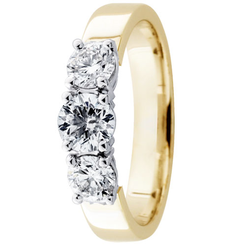 Festive Trilogy Trend 445-100FL-kkvk är en vacker diamantring av gul- och vitguld med tre stenar. Största delen av ringstorleken tillverkas på beställning, och då är leveranstiden 10-20 arbetsdagar. Diamantringar som beställs från fabriken har endast bytesrätt. Graverade diamantringar har ingen retur- eller bytesrätt. Mer information om ringen hittar ni nedan på Mer information -fältet.