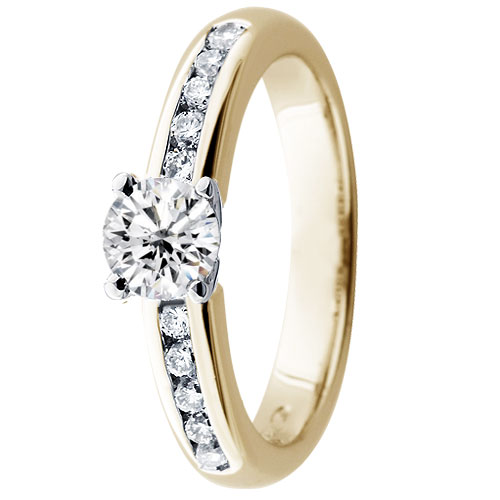 Festive Verona Solitaire 444-065-kk är en vacker diamantring av gulguld med sidostenar. Största delen av ringstorleken tillverkas på beställning, och då är leveranstiden 10-20 arbetsdagar. Diamantringar som beställs från fabriken har endast bytesrätt. Graverade diamantringar har ingen retur- eller bytesrätt. Mer information om ringen hittar ni nedan på Mer information -fältet.