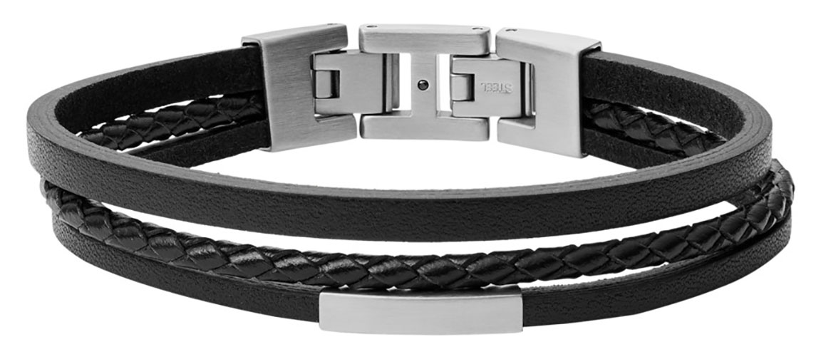 Fossil armband Multi-Strand Silver-Tone Steel and Black Leather Bracelet JF03322040
