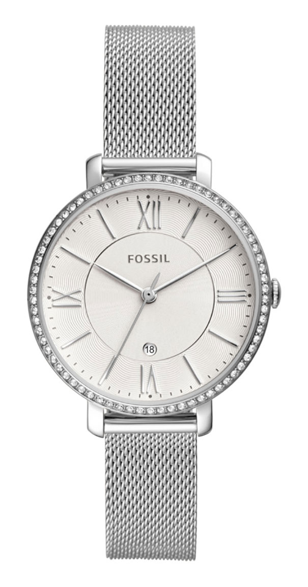 Fossil Jacqueline ES4627 är en vacker damklocka. Boetten och mesh armbandet är tillverkade i silvrig rostfritt stål. Boettens bredd är 36 mm och armbandets bredd är 14 mm. Designad av amerikanska märket Fossil, denna damklocka har 2 års garanti och skickas hem i tillverkarens originalförpackning.