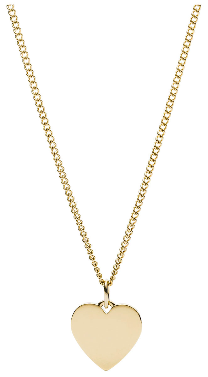 Fossil Jewelry JF03080710 hjärthalsband är tillverkat av guldfärgat rostfritt stål. Kedjans längd är ca 406 - 457 mm. Hjärthänget mäter ca 10,5 x 13 mm. Fossil smycken, från amerikanska Fossil, levereras i tillverkarens originalförpackning.