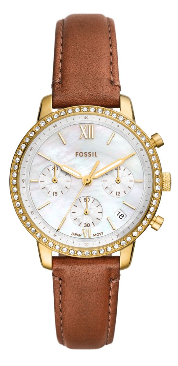 Fossil Neutra Chronograph brown gold ES5278 är en klassisk och mångsidig damklocka. Urtavlan är utsmyckad med vacker pärlemor och briljanta zirkonia, vilket innebär att klockan är lämplig för även de mest festliga tillfällen. Den mångsidiga kronograffunktionen säkerställer att klockan fungerar perfekt även i vardagen. Klockan är försedd med ett mjukt läderarmband. Fossil-klockor levereras i tillverkarens originalförpackning och omfattas av två års garanti.
