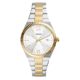 Det tvåfärgade armbandsuret Fossil Scarlette ES5259 har ett klassiskt designspråk från 1970-talet, en snygg väska och ett integrerat armband. En räfflad krans lyfter looken. Klockan har en 38 mm stor boettbredd och ett kvarts urverk. Armbandet är justerbart till 190 +/- 5 mm. Fossil Scarlette ES5259 är vattenskyddad till 50m/5atm, vilket innebär att den har begränsad vattentålighet (rekommenderas inte för simning). Fossil klockor levereras i tillverkarens originalförpackning och har två års garanti.