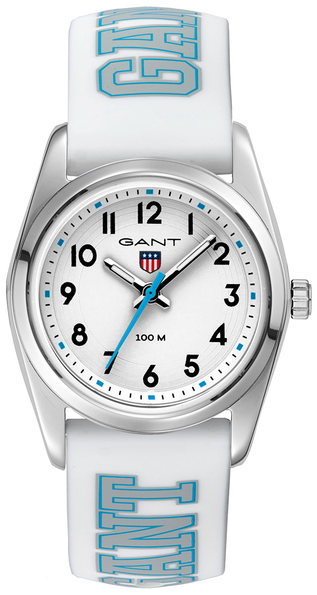 Gant Graduate K280001-BL är en fantastisk barnklocka som är perfekt för den yngstas första klocka. Klockan har en silverfärgad boett i rostfritt stål och ett vitt hartsarmband med texten "GRADUATE" i blått. Under mineralglaset finns en snygg vit urtavla med stora och lättlästa siffror. Boetten är 28 mm bred och 8 mm tjock. Klockan drivs av ett Y121F kvartsurverk. GANT Graduate K280001-BL är vattentålig till 10 atm / 100 m, vilket betyder att den är badtålig.