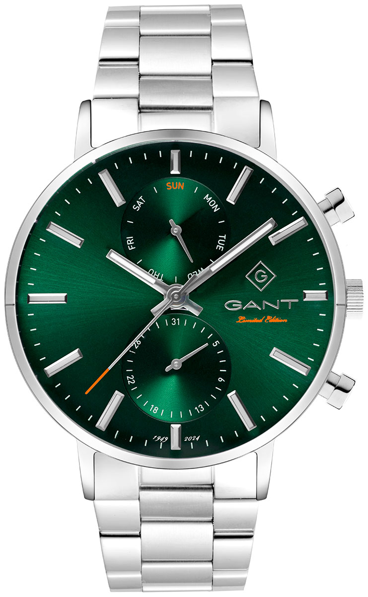 Gant Park Hill G121022 är ett armbandsur i begränsad upplaga med en stilren look skapad av en boett och ett armband i rostfritt stål samt en flaskgrön urtavla. Urtavlan har datum- och veckodagsvisning i separata subdials samt självlysande index och visare. Boetten är 43,5 mm bred och 10 mm tjock. Armbandet är 22 mm brett. Klockan drivs av ett pålitligt japanskt Miyota-urverk.