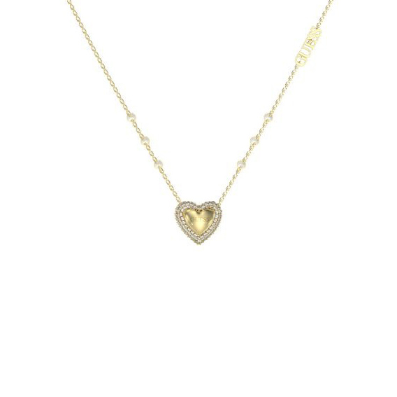 Det guldfärgade GUESS Beloved hjärthalsbandet JUBN05018JWRHT/ har en klassisk look och passar för en mängd olika användningsområden, både till vardags och vid mer formella tillfällen. Hjärthängets kant är inramad av klara kristaller. Hjärthalsbandet är tillverkat av rostfritt stål och dess längd kan justeras mellan 40,7 cm + 45,7 cm. Hängets storlek är 12 mm. GUESS-halsbanden levereras i en vacker tillverkarbox.