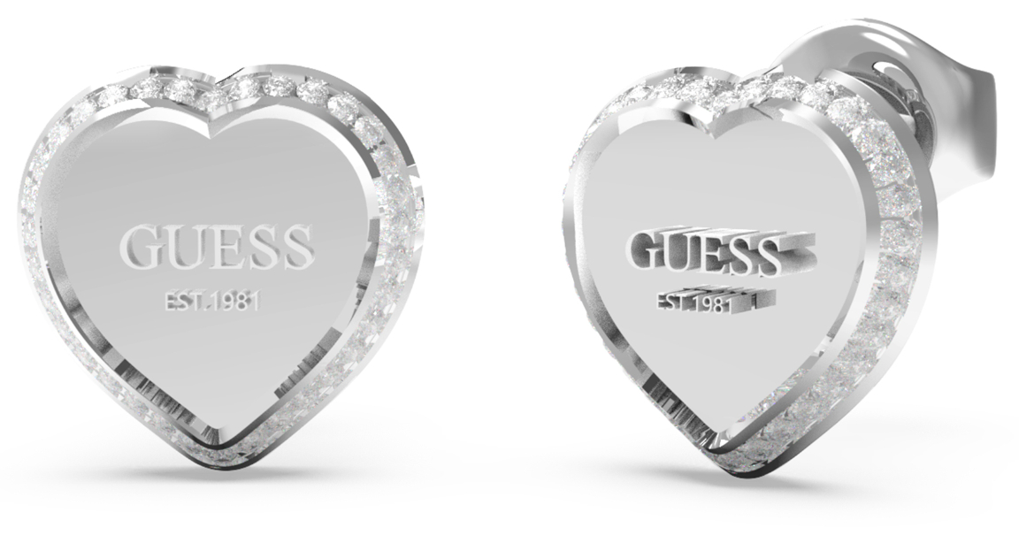 De lyxiga GUESS-smyckena har en avslappnad look och är lätta att bära vid alla tillfällen. De silverfärgade Guess JUBE01427JWRHT/U hjärtörhängena är prydda med ett hjärta som är infattad med syntetiska zirkoner runt kanterna. Storlek: 11 mm. Guess-smyckena levereras i tillverkarens originalförpackning.