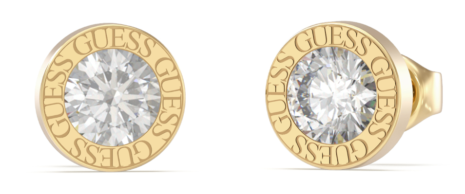 Guess JUBE02244JWYGT/U örhängen är perfekta för alla som vill ha en klassisk och iögonfallande stil. De här 14 mm breda örhängena är dekorerade med vita kristaller. Guess örhängen levereras i tillverkarens originalförpackning.