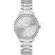 Silverfärgad Guess W1280L1 med 3D printad logo i urtavlan, konvex glass och kristallinbäddad bezel. Boettens diameter är 38 mm och tjocklek 9,5 mm. Guess klockor har 2 års garanti och skickas hem i tillverkarens originalförpackning.