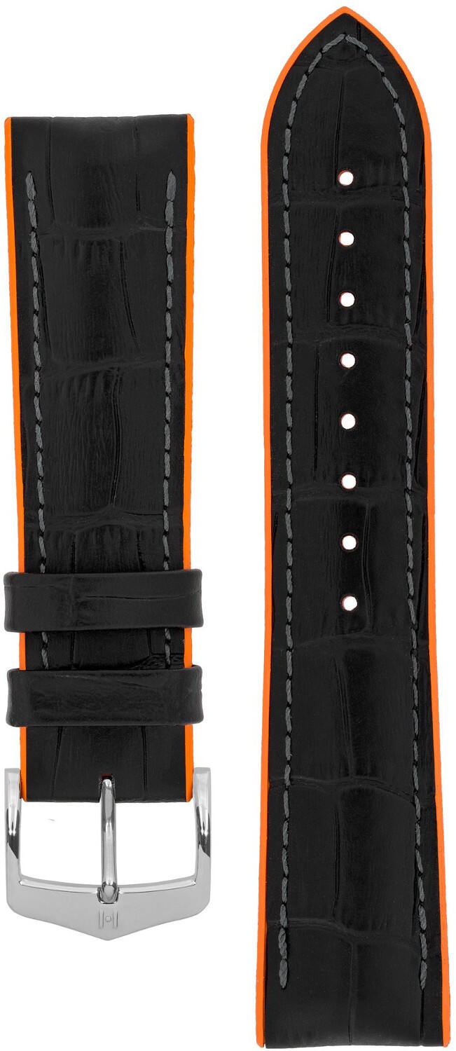 ‌Hirsh Andy 092 76 28 0 50-armbandet med dubbel struktur. Boetten är tillverkad av naturgummi och är belagd med svart krokodilmönstrad läder. Hirsch klockarmband är vattentät till 300 m och kommer med 1 års garanti.