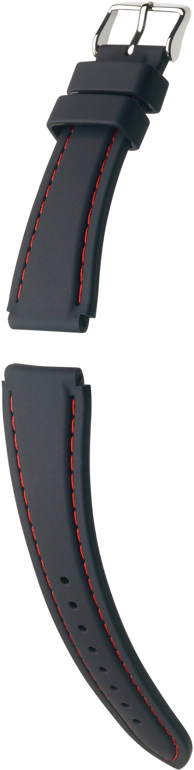 Hirsch Belize-armbandet 402 68 8 51 är tillverkat av svart syntetiskt gummi och har röda sömmar. Armbandet är vattentätt. Armbandet finns i 20 mm och 22 mm bredd. Bredden mäts vid den bredaste delen av armbandet, där det är fäst vid klockhuset. Den totala längden på armbandets delar av syntetiskt gummi är 19,5 cm. Hirsch-armband har en garanti på 1 år som täcker tillverknings- och materialfel.